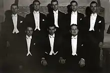 The society’s repertoire, which contains over 200 arrangements, is composed entirely of music arranged by current and former members of the group during its more than eight decades of existence. It spans a variety of genres from barbershop to jazz to songs by more contemporary artists like Queen, MIKA, Radiohead, Ariana Grande, Tenacious D, Kanye West and Michael Bublé.[4] In addition to singing, the group prides itself on its comedy, with a typical concert including shtick written by members of the group. Each year, the Society of Orpheus and Bacchus performs across the USA and around the world, typically wearing tuxedos or suits with custom group neckties. They have performed at the White House, La Fortaleza in Puerto Rico, the American Airlines Arena for the NBA team the Miami Heat, as well as at country clubs, yacht clubs, churches, schools and resorts. The SOBs are one of only three groups — along with the Whiffenpoofs and Whim 'n Rhythm — that have a weekly engagement at Mory's Temple Bar.