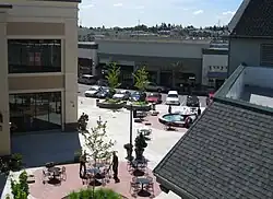 Construction on the project began in 2003.[10] The Meier & Frank opened in early October 2004,[11] while other stores finished construction later that month.[7][12] The grand opening for the 386,000 square feet (35,900 m2) shopping complex was November 6, 2004.[13] The 55-store complex is designed to resemble a standard Main Street style shopping district with open air, free-standing stores complete with parallel parking on the streets within the complex.[7][14] When it opened it was the first of the lifestyle centers to open in the Portland metropolitan area.[15]