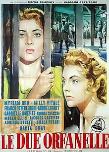 The Two Orphans (Italian:Le due orfanelle) is a 1954 French-Italian historical melodrama film directed by Giacomo Gentilomo and starring Myriam Bru, Milly Vitale and André Luguet.[1] It is based on the 1874 play The Two Orphans by Adolphe d'Ennery and Eugène Cormon, one of a large number of film adaptations. It was shot in eastmancolor, with sets designed by the art director Virgilio Marchi.