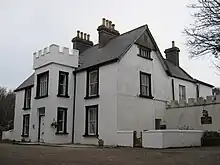 John Goodacre sold the 1,900 acres (7.7 km2) of land around Tóin an tSeanbhaile which had been bought by his father,[16] Frederick Lambart, 8th Earl of Cavan in the early 1870s.[17] Lambart built a hunting lodge on this land. In 1888, his wife (Caroline, the Countess of Cavan) sold the land to Mrs Agnes MacDonnell.[18] Mrs MacDonnell and the estate became national and international news in October 1894,[19][20] when Mrs MacDonnell was savagely attacked by her employee James Lynchehaun (c. 1864–1937) and left for dead after he set fire to her home at Valley House. His arrests and subsequent escapes[21] were reported in the media, and became part of the popular culture of the era, with references to the attack in J.M. Synge's The Playboy of the Western World[22] and James Joyce's Ulysses (1922).[23]