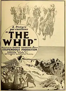 The Whip is a 1917 American silent drama film directed by Maurice Tourneur that is based on the play of the same name by Henry Hamilton and Cecil Raleigh. The film stars Alma Hanlon, June Elvidge, and Irving Cummings. It also features Bobby Vernon, Wallace Beery, as well as Gloria Swanson in one of her early film roles. The film survives and has been released on DVD.[1]