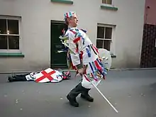 - 'dressed in white calico suits, three-cornered hats, and wooden swords. Their hats and clothes were decorated with gaily coloured paper ribbons.' [Douglas, 1950][46]
