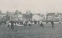 On 2 March 1892, White Rovers played its first match against another club, the International Athletic Club, nickname Inter-Nos, which was held at Bécon, with Rovers winning by a large margin of ten goals to one.[7] This was also the very first interclub match played in France, because until then, all those who practiced football did so within a club, in a kind of training match.[7] This resouding defeated brought waves of departure for International AC, including that of Louis Cotton, the captain of the team, who joined the club's first rival, the White Rovers, with whom he would experience much more success.[7] At the end of 1892, three clubs coexisted in Paris,Standard Athletic Club and Club Français, and naturally, a rivalry between them quickly developed, meeting up regularly during the 1892–93 season. On 11 December 1892, the White Rovers played against Standard AC for the first time, winning 5–1, and then they Club Français for the first time in Bécon on 8 January 1893 and also won (3–2).[8] Initially, the Rovers had no French opponent to fear, and in fact, after their thumping victory over International AC in March 1892, and wins over Standard AC and Club Français in 1892–93, the White Rovers continued their series of victories by beating Standard AC once again on 22 January by 3–0, and again on 11 March, on Standard AC's ground located at Porte Dauphine (2–0).[8]
