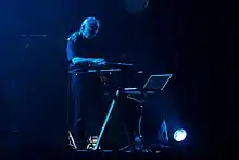 On The Young Gods, the band used the sampler as a compositional tool: the tracks are constructed from classical and rock/metal guitar samples.[10] On the band's arrangements, David Stubbs of The Quietus wrote: "They used artifice and synthesis, mechanically retrieving the sounds of the dead rock (and classical) past, but forging them in such a way as to create something bold, grandiose and absolutely new under the sun."[11] Treichler's vocals were described as "leering" and "guttural."[3] The tracks often deviate from the standard verse–chorus form.[11] The band have described their music as "new sonic architecture."[12]