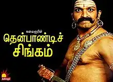 Thenpandi Singam (Tamil: தென்பாண்டி சிங்கம்) is a 2016 Tamil-language historical drama starring Benito Alex, Devipriya, Nesan, Krish and Srikanth. It aired Monday through Friday on Kalaignar TV from 15 September 2016 to 13 April 2017 at 8:30PM IST for 151 Episodes. The show has been created and written by author and screenwriter Karunanidhi.[1] Thenpandi Singam is based on true story of the life of The Valukku Veli Ambalam.[2][3]