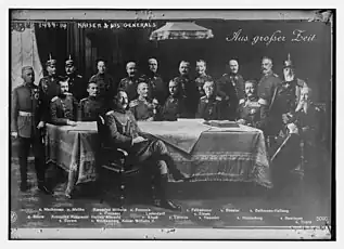 Another problem proved to be informing the people of the military situation. As early as September 1914, Chief of the General Staff Erich von Falkenhayn had called for systematic public education about the unfavorable military situation resulting from the First Battle of the Marne. On the advice of the Foreign Office, which feared unpredictable consequences abroad, and of several business associations, Bethmann Hollweg refused to allow the government to disseminate the military truth.[66] In spite of all self-deception, he said, education could happen "only gradually through events themselves". Confidence in victory was, after all, a "moral factor of tremendous importance".[67]