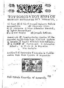 Theophilos Corydalleus (/kɔːrɪˈdæliəs/; Greek: Θεόφιλος Κορυδαλλεύς, romanized: Theofilos Korydallefs; 15631646) was a Greek Neo-Aristotelian philosopher who initiated the philosophical movement known as Korydalism or Corydalism. He was also an Eastern Orthodox cleric (Metropolitan of Nafpaktos), physician, physicist, astronomer, mathematician, author, educator and geographer. His philosophical thought kept influencing Greek education for two hundred years after its inception.[1]