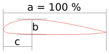 In aeronautics, the thickness-to-chord ratio, sometimes simply chord ratio or thickness ratio, compares the maximum vertical thickness of a wing to its chord. It is a key measure of the performance of a wing planform when it is operating at transonic speeds.
