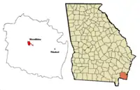 ![]() Location of Thiokol plant and Woodbine in Camden County, Georgia | |