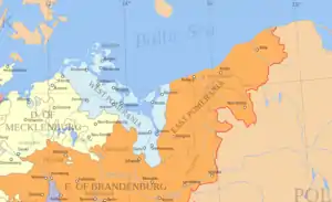 However, Swedish expectations of widespread German support proved unrealistic. By the end of 1630, their only new ally was the Administrator of Magdeburg, Christian William whose capital was under siege by Tilly.[74] Despite the devastation inflicted by Imperial soldiers, Saxony and Brandenburg had their own ambitions in Pomerania, which clashed with those of Gustavus; previous experience also showed inviting external powers into the Empire was easier than getting them to leave.[75]