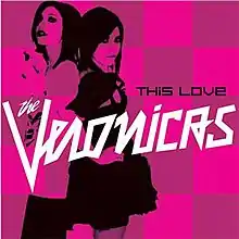 "This Love" is a dance-rock song written by Toby Gad and a then-unknown Kesha, produced by Gad for Australian musical duo the Veronicas' second album, Hook Me Up (2007). It was released as the album's third single in Australia as a digital download on 30 March 2008 and CD single 14 April 2008. The song became a top-10 hit in Australia and top-20 hit in New Zealand, peaking at numbers 10 and 14, respectively. AllMusic called "This Love" "an utterly charming dance-rock confection that, in its last minute, abruptly unleashes a euphoric synthesizer countermelody whose nod to a-ha's 'Take On Me' is unmissable."[1]