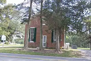 The present structure was originally built in 1825 and remodeled in 1877. It is a small one-story, three-bay by three-bay, gable-roofed, brick building in the Greek Revival style. Also on the property are a contributing privy and combination storage shed and refreshment stand, both built about 1900.