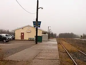Thompson station is a station stop in Thompson, Manitoba, Canada. The stop is served by Via Rail Canada's Winnipeg – Churchill train.[1][2] The station is located about 1 kilometre (0.62 mi) from downtown near the industrial park.