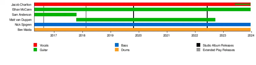 During late 2017 guitarist, Sam Anderson, left the band and was replaced by Matt van Duppen, who at the time was also guitarist for heavy-act Better Half. At the time Matt also assumed the role as the band's manager.[8]