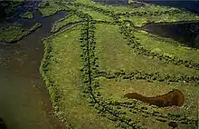 The Thousand Islands are divided roughly in half by the Minutemen Causeway. The formation comprises approximately 900 acres (360 ha) of salt marsh, mangroves, spoil sites containing upland vegetation, and maritime hammocks on shell middens.[4] Beginning in the late 1950s, small ditches were dug through the islands to allow water movement and fish access to inner areas of the succulent marsh for mosquito control.[5]