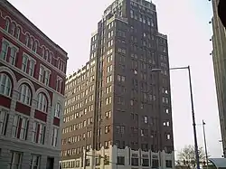 After the deal with HRI was terminated, the National Trust for Historic Preservation included the building on its annual list of America's Most Endangered Historic Places in June 2010.[13] In October 2010, the city accepted a grant from the Mississippi Department of Archives and History (MDAH) for a study of the building. The study was to focus on what would have to be done to rehabilitate the building for use.[14] The city also hired Watkins Development, at a cost of $10,000 per month, to focus on developing not only the Threefoot Building but the rest of downtown and all of Meridian. Watkins Development – like HRI – was involved in the renovation of Jackson's King Edward Hotel.[14] The building assessment study was completed in mid-2012, finding that the foundation of the building was sound, but the upper floors were being subjected to daily weather because of blown out windows, crumbling bricks, and other structural problems.[15]