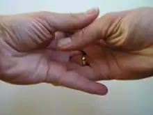 Contra-rotation involves moving the thumbs in opposing directions. While thumb twiddling comes naturally for almost everyone, it is extremely rare for people to be able to naturally contra-rotate their thumbs without spending a significant amount of time training the new technique.[3] Typically, a person will get through a half rotation before both of the thumbs will inexplicably synchronize directions. A similar phenomenon occurs using similar finger or arm movements.[4]