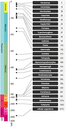 Results from a timeline search in TimeTree for humans (Homo sapiens)