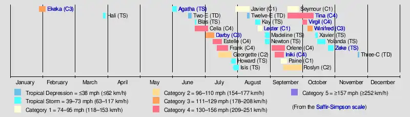 Tropical Storm Zeke (1992)Hurricane Winifred (1992)Hurricane Virgil (1992)Hurricane Tina (1992)Hurricane InikiHurricane Lester (1992)Hurricane Darby (1992)Tropical Storm Agatha (1992)Hurricane Ekeka (1992)Saffir-Simpson scale