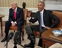 President Obama meets with President-elect Donald Trump at the Oval Office following the latter's victory in the 2016 presidential election, November 10, 2016