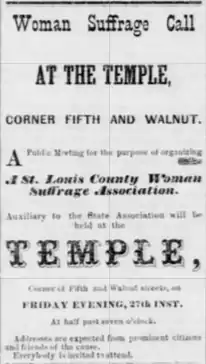 - ↑ "Woman Suffrage Association". The Missouri Republican. 1870-11-09. p. 2. Retrieved 2020-09-24 – via Newspapers.com.