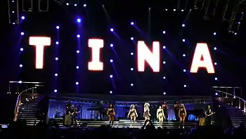 Originally known as "Tina!: Live in Concert", Turner decided to have the tour commemorate her fiftieth year performing on stage. Turner first performed at Club Imperial with Ike Turner and the Kings of Rhythm in 1958 (at the time, Turner was known as "Little Ann").[10] The tour was sponsored by Amway Global and received early praise from the media and fans.[11] Tour dates were announced in May 2008. While promoting the tour on The Early Show, Turner stated she was ready to return to perform in America and perform in familiar cities.[12] She followed with saying she wanted the tour to start in Missouri since that is where her music career began. Rehearsals for the tour began in late September 2008 at Sprint Center in Kansas City. Production rehearsals began in July 2008 in Hershey, Pennsylvania. The singer gave Access Hollywood an exclusive backstage glimpse at rehearsals and a photoshoot for the tour and upcoming album, Tina!: Her Greatest Hits. The success of the tour was immediate as many shows sold out within minutes. Turner announced additional dates in the United States and release dates for Europe.[13] The tour was a triumph for Turner and continued her success as one of the biggest concert draws in history. The show was recorded for a live album and DVD release entitled, Tina Live.