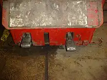 The mount/demount mechanism consists of the duckhead, swing arm, and vertical slide. The duckhead is at the bottom end of the vertical slide. The duckhead is uniquely shaped, like a tapered bill, to fit next and surround the rim of a wheel. It can either be made of metal or plastic. The duckhead mounts and demounts the tire from the wheel.[2] The swing arm moves left and right. The purpose of the swing arm is to move the duck head near or away from the rim. The last component of the mount/demount mechanism is the vertical slide. The vertical slide moves up and down so that the duck head can fit onto the rims of different size wheel widths. The vertical slide has a spring and locking handle above the swing arm to set the duckhead and maintain a stable position around the rim.[2]