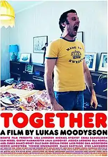 Together (Swedish: Tillsammans) is a Swedish comedy-drama film, which was released to cinemas in Sweden on 25 August 2000.[2] It is Swedish director Lukas Moodysson's second full-length film. Set in a Stockholm commune called "Tillsammans" (Swedish for "Together") in 1975, it is a satirical view of socialist values and a bittersweet comedy. Moodysson filmed a sequel titled Together 99 in 2022. It is set to be released in 2023.[3]