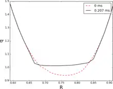 The first results of a numerical simulation that provided verification of the Kadomtsev model were published in 1976.[8] This simulation demonstrated a single Kadomtsev-like sawtooth relaxation. In 1987 the first results of a simulation demonstrating repeated, quasi-periodic sawtooth relaxations was published.[9] Results from resistive MHD simulations of repeated sawtoothing generally give reasonably accurate crash times and sawtooth period times for smaller tokamaks with relatively small Lundquist numbers.[10]