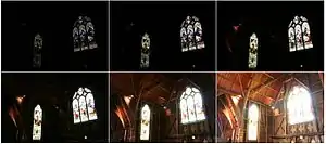 The images on the right show the interior of a church, a scene which has a variation in radiance much larger than that which can be displayed on a monitor or recorded by a conventional camera. The six individual exposures from the camera show the radiance of the scene in some range transformed to the range of brightnesses that can be displayed on a monitor. The range of radiances recorded in each photo is limited, so not all details can be displayed at once: for example, details of the dark church interior cannot be displayed at the same time as those of the bright stained-glass window. An algorithm is applied to the six images to recreate the high dynamic range radiance map of the original scene (a high dynamic range image). Alternatively, some higher-end consumer and specialist scientific digital cameras are able to record a high dynamic range image directly, for example with RAW images.