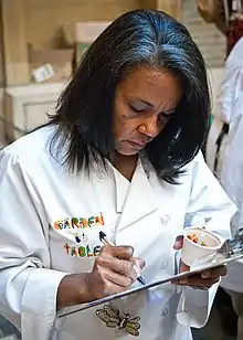 ![]() Chef Toni Tipton-Martin judges a chili recipe prepared for the Second Annual U. S. Department of Agriculture Chili Challenge Contest, 2011. | |