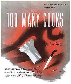 Vladimir Bobri created the title illustration for Too Many Cooks, serialized in six issues of The American Magazine beginning in March 1938[1]
