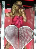 The group have performed the song on their four tours, the Spiceworld Tour, the Christmas in Spiceworld Tour, the Return of the Spice Girls and the Spice World – 2019 Tour.[61][62][63][64] It remained in the group's live set after Halliwell's departure at the end of the European leg of the Spiceworld Tour; her parts were taken by Bunton. The performance at the tour's final concert was included on the video album Live at Wembley Stadium, filmed in London on 20 September 1998.[65] During The Return of the Spice Girls Tour, the group dressed in tuxedos and performed an uptempo jazzy version of the song, while doing a striptease behind neon pink-coloured, heart-shaped doors.[66][67]