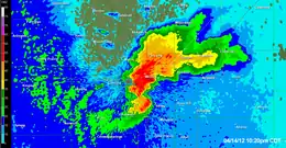 ![]() Radar image of the supercell that produced the EF3 Wichita tornado. | |