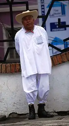 Much of the region's cuisine is based on corn, along with wild and cultivated plants and fruits.[22] Much of traditional cuisine survives because of the area's relative remoteness and traditional women still cook over wood fires, grinding corn and other foods on metates. Dishes include soups made from squash, sweet corn and beans. Beans are flavored with sesame seed. Small dishes include tlacoyos with beans, chili peppers with sesame seed, tamales with salted fish, turkey and other fillings, enchiladas zampadas. Vegetable dishes include a green called quelite with beans or with herbs and eggs, chayote with squash seeds, enchiladas with mamey and nopal cactus with eggs. Seafood dishes include shrimp in various preparations including with sesame seed and sweet potato and grilled fish. Meats include various domestic fowl, pork, beef and rabbit, often smoked. Most ingredients are indigenous with a few exceptions such as sesame seed and almonds.[23] Another common dish is zacahuil, which is a kind of corn pudding.[16]