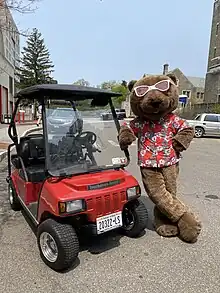 In 2021,under new leadership, the Big Red Bears sought to bring a new transportation system to campus to increase the efficiency and safety of the Touchdown program.[12] Funds were raised in 2022[13]and in-combination with pre-existing gifts, a purchase of a street-legal golf cart took place in 2023. The "Touchdown-Mobile" was first used on the final day of classes of the 2023 Spring semester and is now the mascot's primary form of transportation.