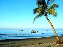 Cox's Bazar is a seaside town, a fishing port and district headquarters in Bangladesh. It is known for its wide and long sandy beach, which is considered by many as the world's longest natural sandy sea beach.[3][6] The beach in Cox's Bazar is an unbroken 125 kilometres (78 mi) sandy sea beach with a gentle slope. It is 152 kilometres (94 mi) south of the Chittagong Seaport. Cox's Bazar is also known by the name Panowa, whose literal translation means "yellow flower". Its other old name was "Palongkee".
