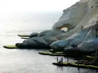 The Rosh HaNikra grottoes are cavernous tunnels formed by sea action on the soft chalk rock. The total length is some 200 metres. They branch off in various directions with some interconnecting segments. In the past, the only access to them was from the sea and experienced divers were the only ones capable of visiting. Today a cable car takes visitors down to see the grottos. A kibbutz, also named Rosh HaNikra, is located nearby. The Israeli city Nahariya is located about 10 km (6 miles) south of Rosh HaNikra. you must take a cable car to get into the grottoes. The Cable car is situated very close to the Lebanese border.