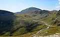 The Transalpina or DN67C[1] is a 148 km national road located in the Parâng Mountains group, Southern Carpathians of Romania, is one of the highest roads of the Carpathian Mountains. It connects Novaci, south of Parâng Mountains, to Sebeș in the north.[2][3] It is the highest road in Romania, having the highest point in Urdele Pass (at 2,145 m). Transalpina traverses four counties – Gorj, Vâlcea, Sibiu, Alba – crossing the Parâng Mountains from south to north. The highest altitude is reached on a segment of about 20 km (12 mi), in Vâlcea County, passing a short distance from the peaks of Dengheru (2,084 m), Păpușa (2,136 m), Urdele (2,228 m), Iezer (2,157 m), and Muntinu (2,062 m).[3][4][5]