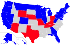 Throughout the United States, transgender rights are a target of conservatives and the Republican Party.[10][11] Restrictions and bans on gender-affirming care, hormone therapy, and drag are common in red states alongside queer-oriented literature, and academic curricula (i.e., gender and sexuality studies, etc.) have been prohibited by state governments in public schools.[12]