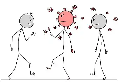 An infected individual spreading COVID-19 to healthy individuals