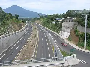 The RN-21 (Bulevar Monseñor Romero) (East–West) is the very first freeway to be built in El Salvador and in Central America. The freeway passes the northern area of the city of Santa Tecla, La Libertad. It has a small portion serving Antiguo Cuscatlan, La Libertad, and merges with the RN-5 (Autopista Comalapa) (East–West, Boulevard de Los Proceres/Autopista del Aeropuerto) in San Salvador.