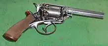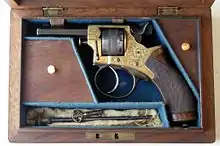 The Tranter revolver was a double-action cap & ball revolver invented around 1856 by English firearms designer William Tranter (1816–1890). Originally operated with a special dual-trigger mechanism (one to rotate the cylinder and cock the gun, a second to fire it) later models employed a single-trigger mechanism much the same as that found in the contemporary Beaumont–Adams revolver.