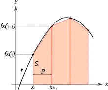 In calculus, the trapezoidal rule (also known as the trapezoid rule or trapezium rule)[lower-alpha 1] is a technique for numerical integration, i.e., approximating the definite integral: