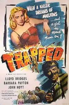 Trapped is a 1949 American film noir crime film directed by Richard Fleischer and starring Lloyd Bridges, Barbara Payton, and John Hoyt. It was written by George Zuckerman and Earl Felton.[1]