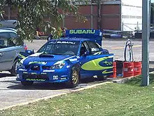 In 2003, Pastrana opened a rallying career in the Race of Champions, and began driving for the Subaru-backed Vermont SportsCar rally team in 2004. Starting in 2006, Pastrana was signed by Subaru to lead their new Subaru Rally Team USA, being paired once again with veteran co-driver Christian Edstrom. On August 5, 2006, Pastrana won the gold medal in the first rally car competition at the X Games, edging out rally legend Colin McRae by 0.53 seconds after McRae rolled his car through the last jump.