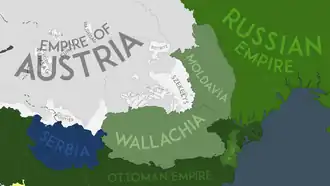The Treaty of Bucharest between the Ottoman Empire and the Russian Empire, was signed on 28 May 1812, in Manuc's Inn in Bucharest, and ratified on 5 July 1812, at the end of the Russo-Turkish War of 1806–1812.[1] The Ottomans had done poorly in the war. The Sublime Porte above all wanted to stay out of the impending conflict between Napoleon's France and Russia. The Russians didn't want a war on two fronts, thus they made peace in order to be free for the upcoming war with France. The Ottomans had extricated themselves from a potentially disastrous war with a slight loss of territory. This treaty became the basis for future Russo-Ottoman relations.[2]