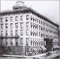 The fourth hotel was designed by John M. Van Osdel, who had designed the previous third hotel. It opened its doors in 1873. It stood six floors.[1] It was constructed James Couch and the estate of his brother Ira Couch, who had himself passed away in 1857.[5][6] The rebuilt hotel remained along with the Palmer House, Grand Pacific Hotel and the Sherman House as a leading hotel after the Great Chicago Fire.[2] It was built in the commercial palazzo architecture style of the day and claimed to be fireproof.[2] James Couch and his son Ira Couch (not to be confused with his late brother of the same name) were the proprietors of the new fourth incarnation of the hotel at its opening.[3] The hotel was one of the city's "big four" post-fire hotels, the other three being the Grand Pacific, Palmer House, and the Sherman House.[16]