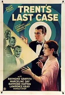 Trent's Last Case is a 1929 American sound part-talkie Pre-Code detective film directed by Howard Hawks and starring Raymond Griffith, Marceline Day, Raymond Hatton, and Donald Crisp. It was released by Fox Film Corporation. In addition to sequences with audible dialogue or talking sequences, the film features a synchronized musical score and sound effects along with English intertitles. The soundtrack was recorded using the Movietone sound-on-film system.[1]