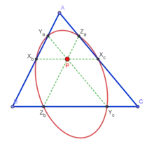 | 2 | Steiner inellipse | Ellipse touching the sidelines at the midpoints of the sides | ![]() Steiner inellipse of △ABC | |